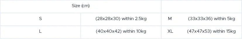 Espacio amplio en varias tallas: S, M, L y XL para adaptarse al tamaño de tu mascota.