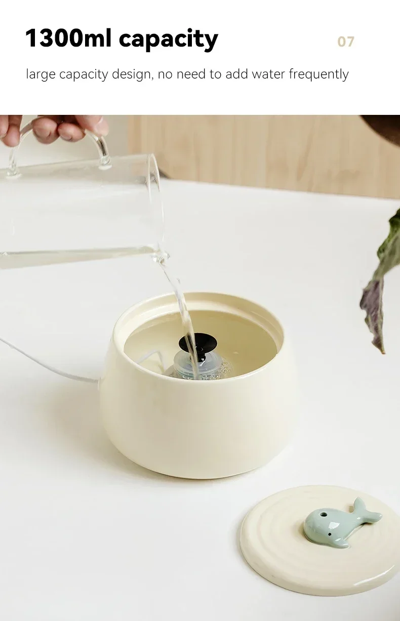 Fuente de Agua de Cerámica para Gatos 1.3L – Recargable por USB con Filtración Automática