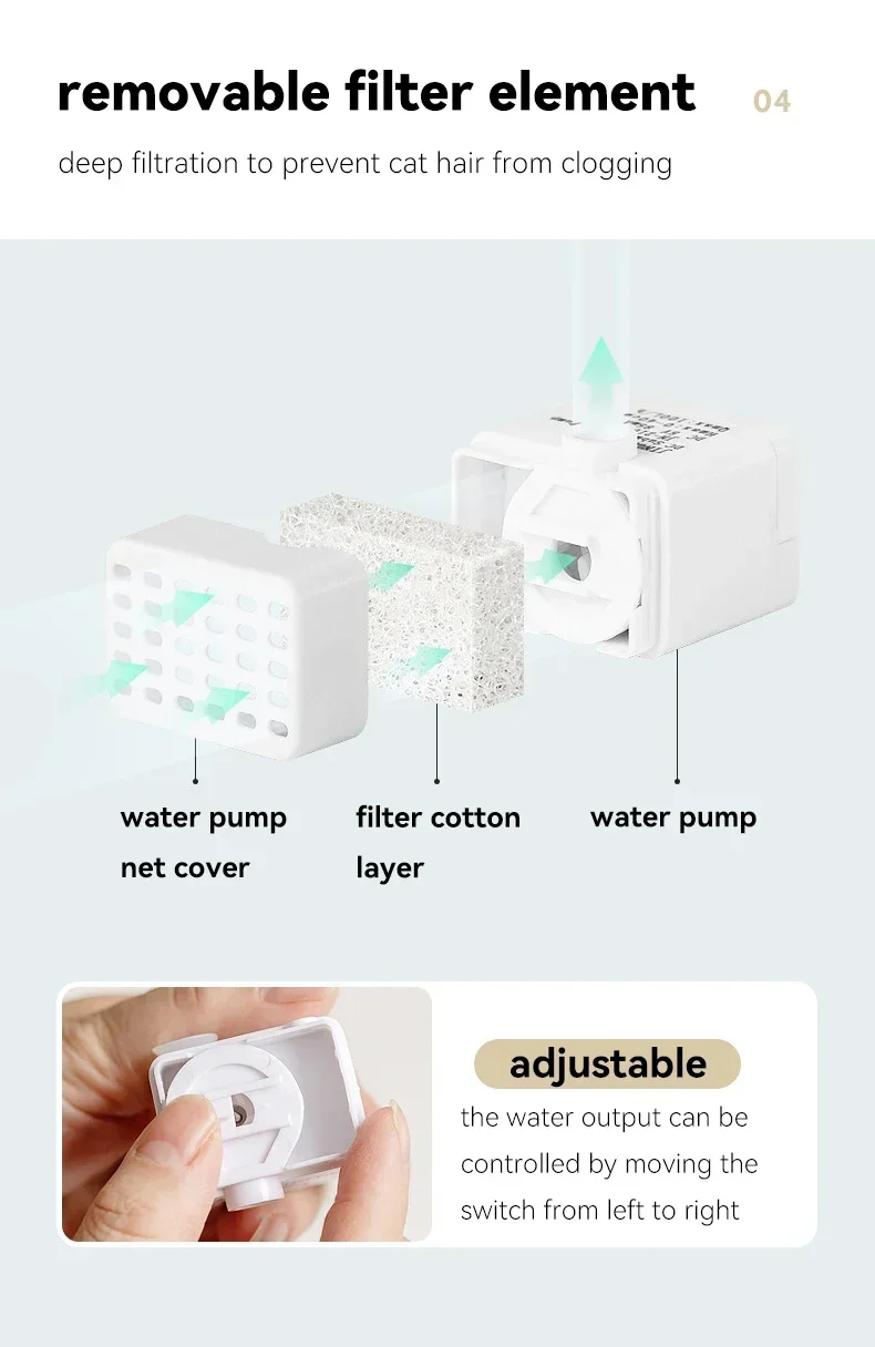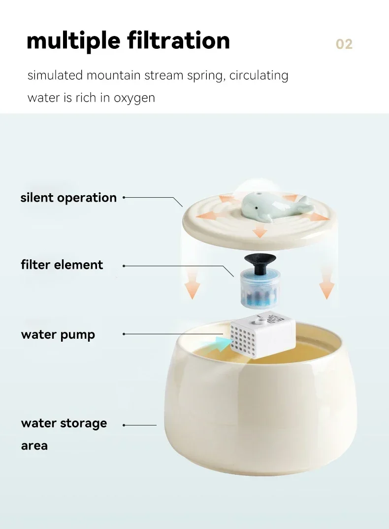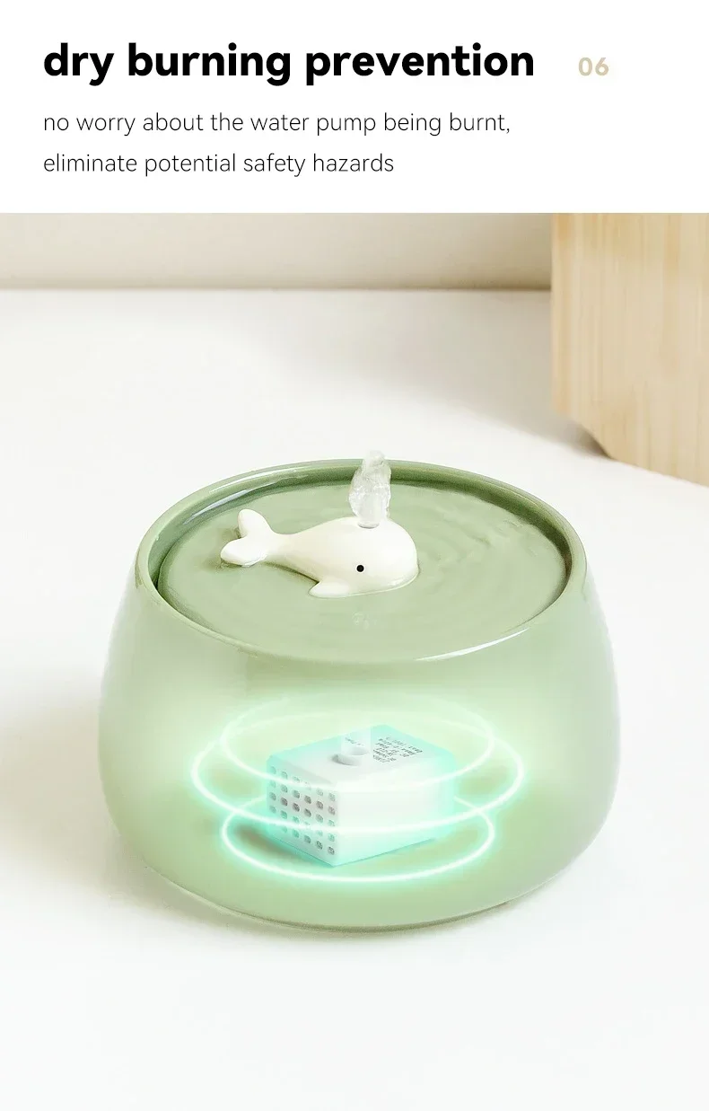 Mantén a tu mascota hidratada y feliz con esta elegante fuente de agua de cerámica para gatos y perros pequeños. Su diseño automático de circulación asegura agua fresca y limpia durante todo el día, promoviendo una mejor salud renal y evitando el agua estancada.